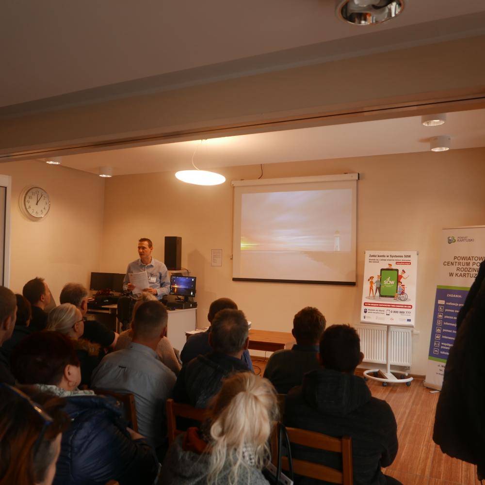 Dnia 24.01.2020 r. odbyła się kolejna edycja spotkania skierowanego do osób z niepełnosprawnością. Pod hasłem „Kompleksowa rehabilitacja" doradca zawodowy z Powiatowego Urzędu Pracy w Kartuzach przekonywał uczestników, że aktywność zawodowa jest rodzajem rehabilitacji, zatem mimo barier zdrowotnych można być aktywnym.